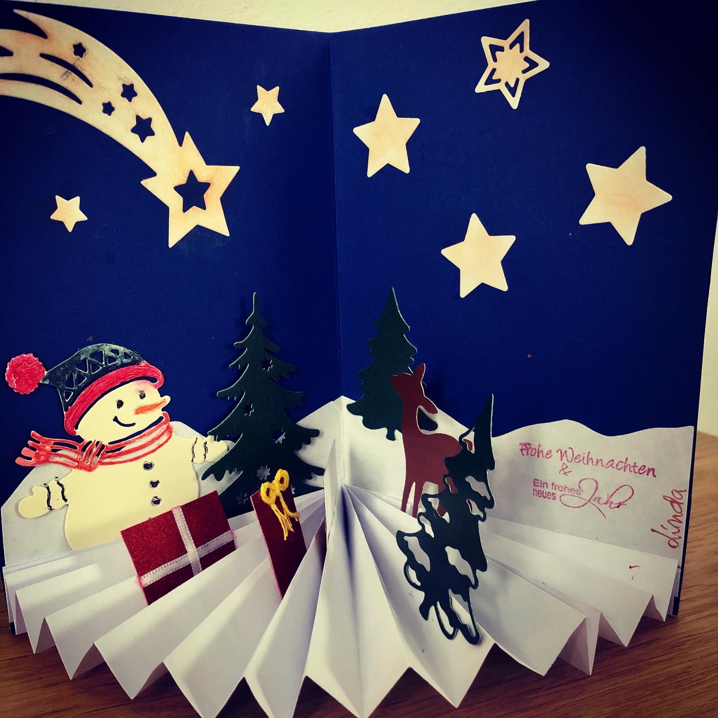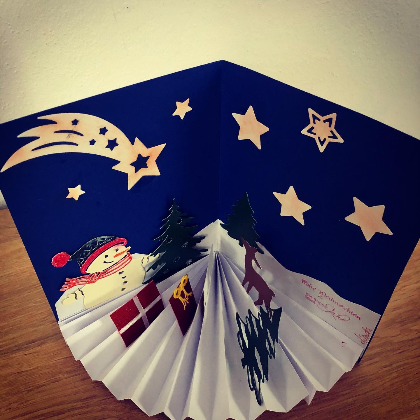 Wenn ich keine Weihnachtskarten kaufen kann, mache ich sie einfach selber. Nicht nur von der Arbeit aus, war ich an daheim gebunden und Langeweile ist für mich ein Fremdwort. Amazon wurde auf einmal mein bester Freund und Partner. Man konnte zwar nicht in Geschäfte aber Bestellungen wurden kontaktlos ausgeliefert.