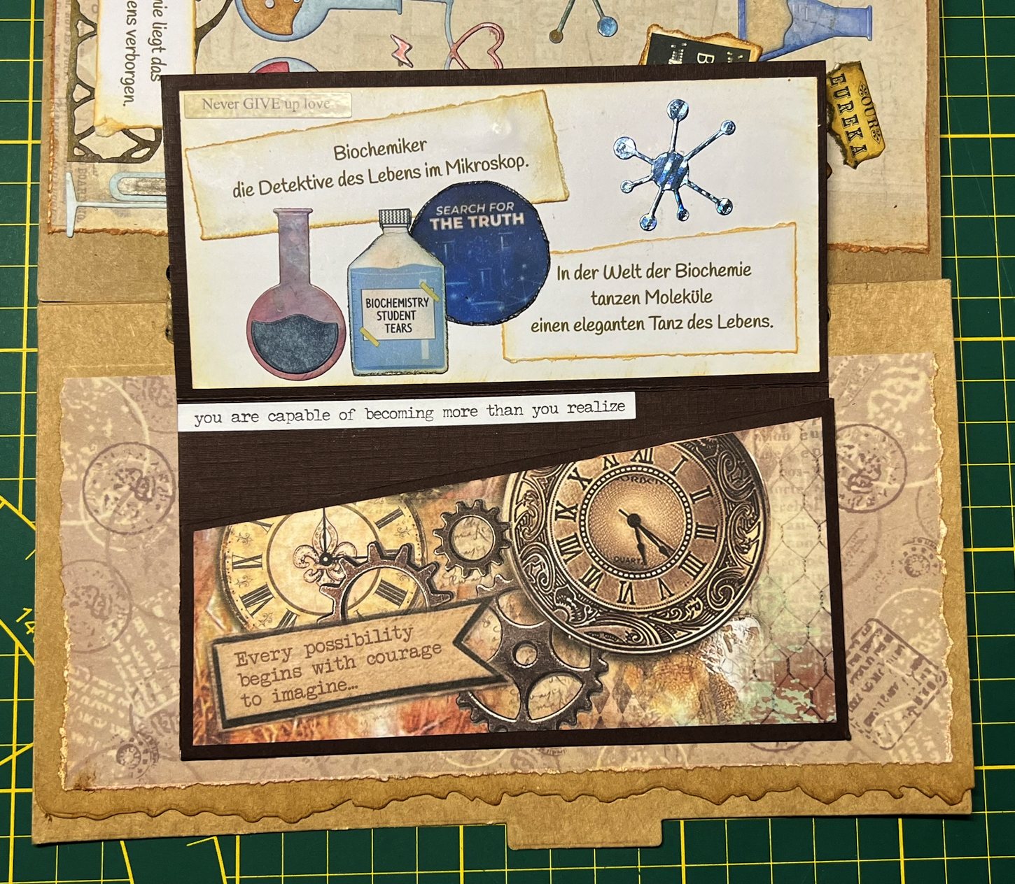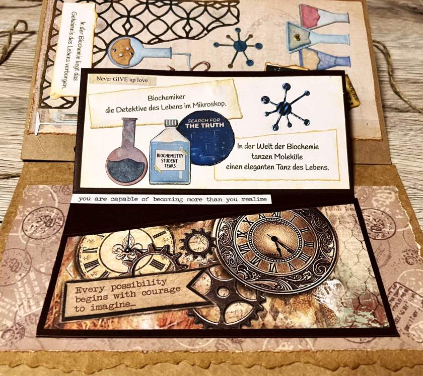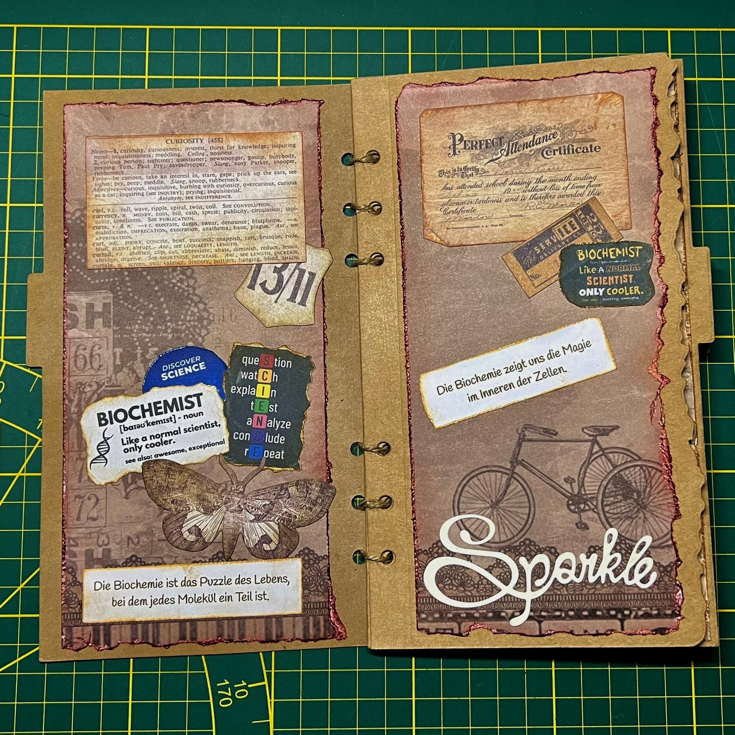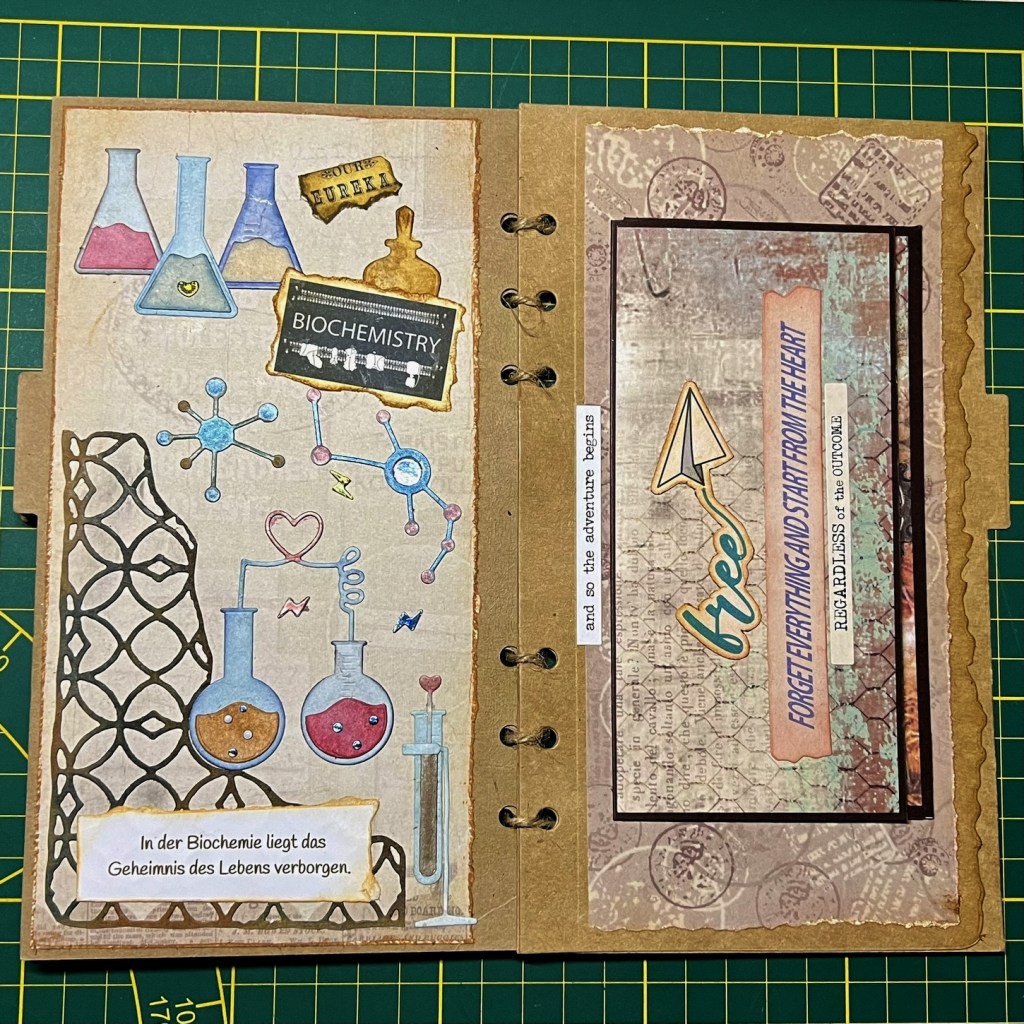 Auch dieses Scrapbook Album erzählt eine kleine Geschichte von einem netten jungen Mann, der obwohl er seinen Doktor in Chemie mit Auszeichnung bestanden hat und in der Forschung tätig ist, seine Hobbies immer noch verfolgt. Er reist gern, meistens mit Fahrrad und Zelt, sein Smartphone ist immer dabei und er liebt die besondere Perspektive bei seinen Fotos und die technischen Spielereien, ist aber auch gerne mal nur für sich.